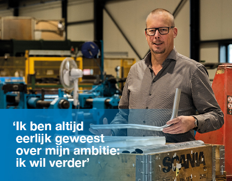 ‘Ik begon als uitzendkracht in de bouw maar werd al snel productiemedewerker bij ketelfabrikant. Toen stapte ik over naar een plaatwerkingsbedrijf. Daar werkte ik 14 jaar als productiemedewerker, eindcontroleur en later productieleider. Na uitstapjes als meewerkend voorman en planner heb ik een lasafdeling, een plaatwerkafdeling en een houtafdeling aangestuurd, voor ik 1 april als productieleider begon bij Vogel, een specialist in het buigen en walsen van leidingwerk met 41 medewerkers.’